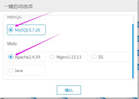 選點(diǎn)FPT、MYSQL及APACHE,然后點(diǎn)確認(rèn)。