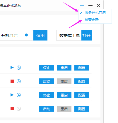 面板右上角的下拉中,勾選“服務(wù)開機(jī)自啟”,這樣服務(wù)器重啟后,就會(huì)自動(dòng)啟動(dòng)該網(wǎng)站運(yùn)行環(huán)境。