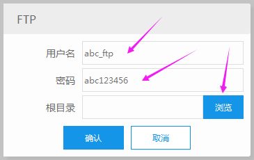 點(diǎn)擊瀏覽,為FTP指定對(duì)應(yīng)的網(wǎng)站文件目錄。