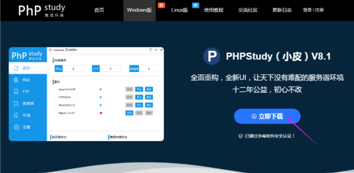 1)網(wǎng)站運(yùn)行環(huán)境集成包下載地址:https://www.xp.cn/download.html,選擇64位安裝包。