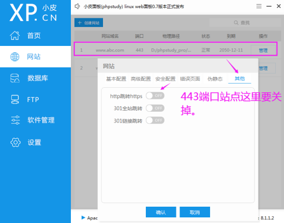 80端口站點(diǎn)這里的HTTPS要開啟。